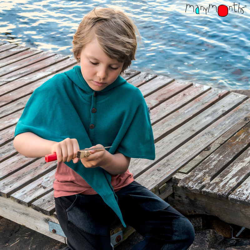 In the beginning, the Multi-Cape is great as a warming layer wearing baby in a sling and as a quick, easy additional layer to wear when the evening gets chilly. Also in a stroller, car and bike seat. Later, it is perfect as a shoulder cape with a dress or skirt. Such a lovely garment for child play as well. (Be a bird, a bat, a knight, a princess...!)