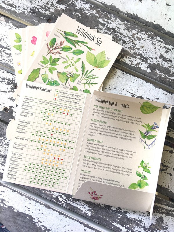 Ook het mapje zelf is nuttig: aan de binnenkant vindt je een handige wildpluk kalender en wildpluktips.
