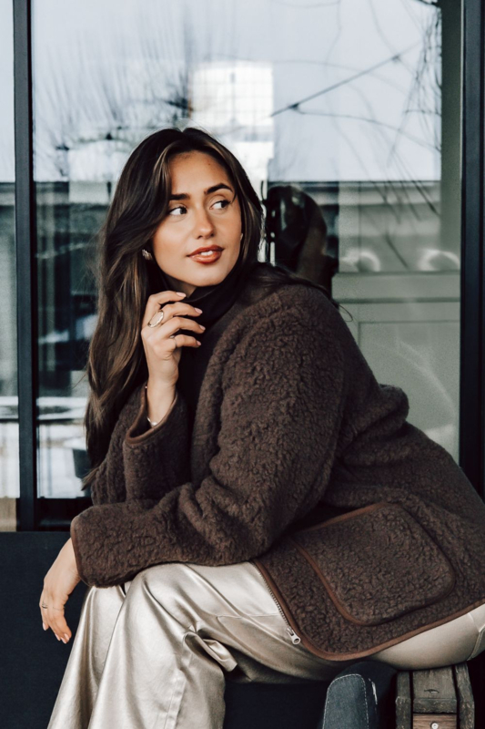 Het model op de foto is 173 cm lang en draagt maat M. Dit vest is ontworpen met een iets oversized pasvorm, ideaal voor een casual en comfortabele look. Wil je een meer aansluitende stijl? Bestel dan een maatje kleiner.