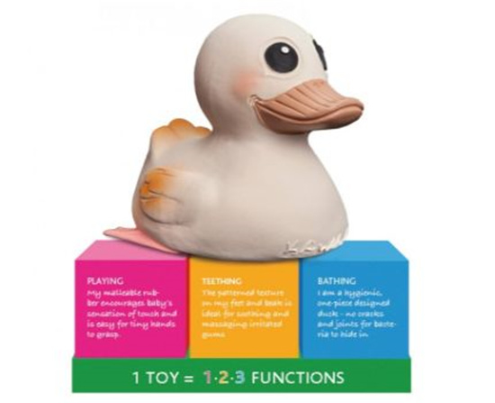 - op snavel en poten zit een patroon, ideaal voor het verzachten en masseren van geirriteerd tandvlees