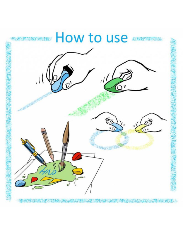 Ze zijn door een leerkracht ontworpen om de pengreep bij jonge kinderen te versterken, zodat de vingers en handen worden voorbereid op het leren schrijven. Het formaat is speciaal ontworpen t.b.v. de betreffende 3 puntsgreep. Ze leren kinderen eenvoudig een goede pengreep aan.