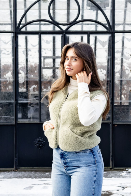 Alwero - Bodywarmer vest in wol met rits - Light Pos , adult - Pistaccio - XS of L