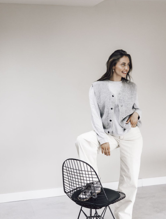 Deze bodywarmer draagt heerlijk licht en comfortabel omdat deze gemaakt is van elastische wol.